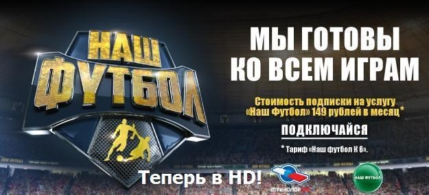 С 1 августа 2013 года абоненты «Триколор ТВ Full HD» смогут смотреть телеканал «Наш футбол» в высоком качестве HD.