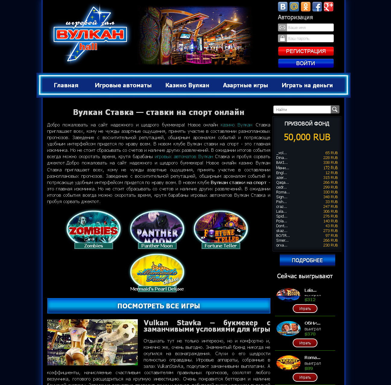 Репутация данного заведения отменная, здесь предоставляется обширный ассортимент слотов, впечатляет своим удобством и интерфейс. Основным отличием клуба считается возможность делать реальные ставки на спорт. Если просто ждать события вам не хочется, то гоните скуку при помощи вращения барабанов. Срывайте крупные денежные выигрыши! Вулкан Ставка ждет всех геймеров с нетерпением и обеспечит комфортное и полезное времяпровождение.