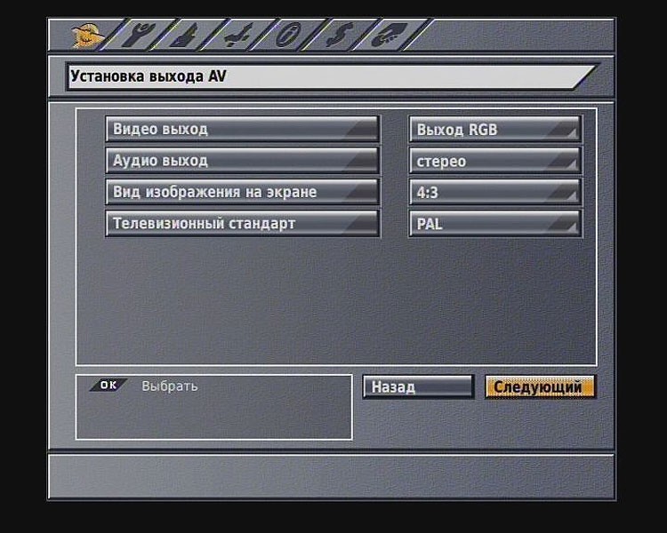 5.  После перезагрузки вы увидите «Мастер настройки». Следуйте шагам, которые он предлагает, и выберете язык, настройте видеовыход и установите часовой пояс.Когда дойдете до предложения выбрать оператора, нажмите «Триколор ТВ-Сибирь», нажмите «Ок».